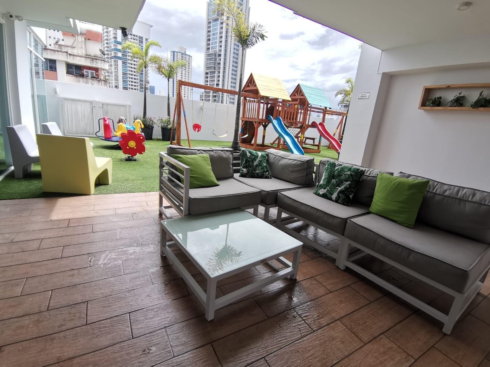 Alquiler de apartamento en San Francisco, ubicado en una esquina del Parque Omar. Este moderno y cómodo apartamento es ideal para quienes buscan vivir en una zona céntrica, segura y con todas las comodidades. 86 m² 2 Recámaras 2 baños Sala Comedor 1 estacionamiento Tiene línea blanca Se alquila amoblado o sin muebles Cuenta con muy buena iluminación natural Incluye 2 camas, una Queen y una sencilla Comedor 4 puestos Centro de entrenamiento Una tv 40 pulgadas Un sofá cama Aires acondicionados en las recámaras sala/comedor $1,300.00 Costo del alquiler amoblado. NEGOCIABLE $1,200.00 Costo del alquiler sin muebles. NEGOCIABLE Este apartamento está perfecto si trabajas en Costa del Este o San Francisco, está a pocos minutos de áreas recreativas como el Parque Omar. Cuenta con facilidad de acceso hacia la corredores Norte y Sur. A pocos metros de colegios, universidades, hospitales, farmacias, supermercados y centros comerciales. Contáctanos para mayor información o para agendarte una visita