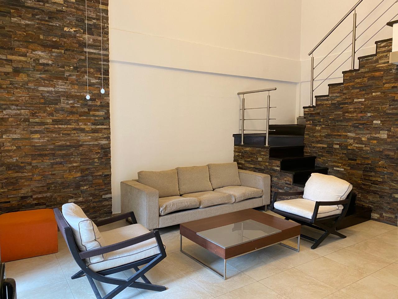 Apartamento tipo duplex, consta de 3 recámaras, 2 baños, walk in closet en recámara principal, cocina abierta con desayunador, sala comedor, 2 estacionamiento lineales. El apartamento consta de aire splits en recámaras y sala comedor, aire central para la sala comedor y cocina. Además consta de línea blanca.